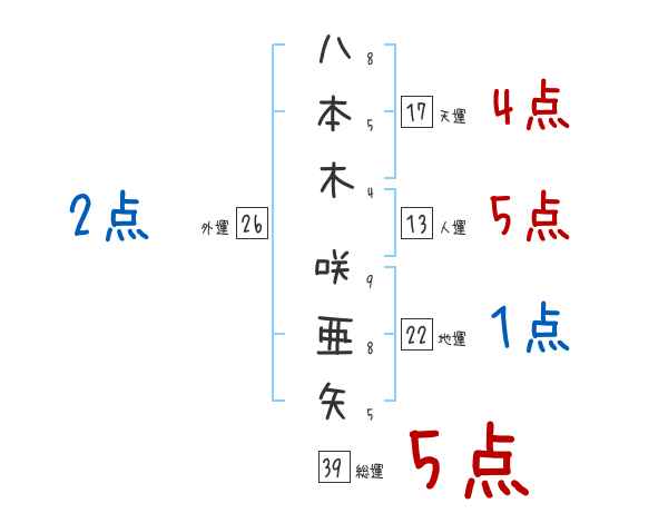 八本木咲亜矢さんの画数の鑑定結果