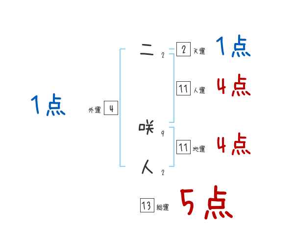 二咲人さんの画数の鑑定結果