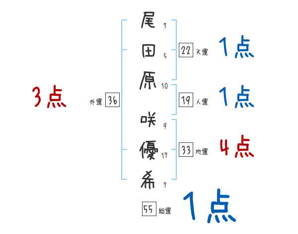 尾田原咲優希さんの画数の鑑定結果