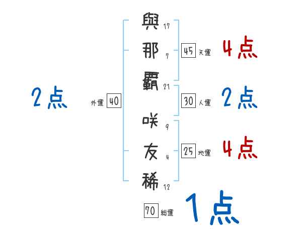 與那覇咲友稀さんの画数の鑑定結果