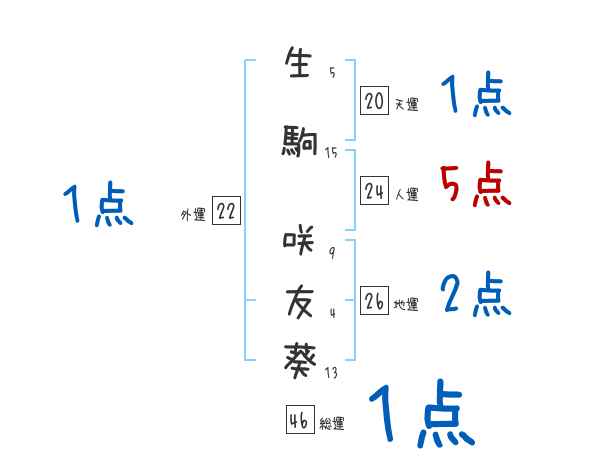 外運![]() | 生駒咲友葵さんの外運は22画の1つ星!努力することが苦手ないっぽう手先が器用。芸術性にも優れる。 生活面を象徴する運勢です。外部から受ける影響力を表し、結婚運、家庭運や職場、環境への順応性を表します。 |
