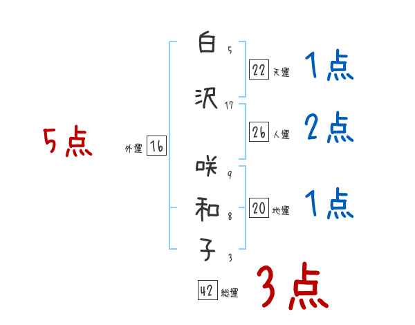 外運![]() | 白沢咲和子さんの外運は16画の5つ星!人望が厚く大きく発展する。逆転成功が見える。 生活面を象徴する運勢です。外部から受ける影響力を表し、結婚運、家庭運や職場、環境への順応性を表します。 |