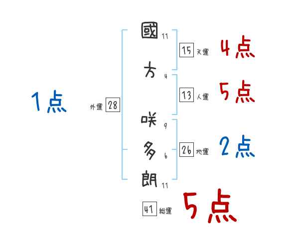 天運![]() | 國方咲多朗さんの天運は15画の4つ星!人徳があり出世する。順調に物事を進め円満な人生。 家系が持つ宿命的な運勢を表します。祖先から受け継いだ苗字ですので自分の力が及びません。家柄を象徴します。 |