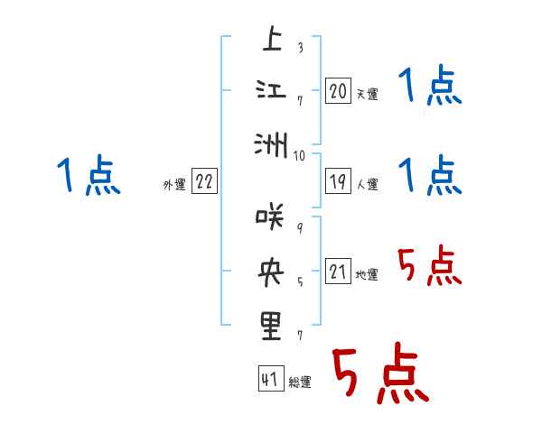 人運![]() | 上江洲咲央里さんの人運は19画の1つ星!優れた才能を持ちますが、協調性が足りないことも。周りの人と協力する事を意識しましょう。 性格や才能などを表す2番目に重要な運勢です。人間関係や協調性、社会的な成功に影響します。主に20歳から50歳ぐらいまでの中年期の運勢を表します。 |