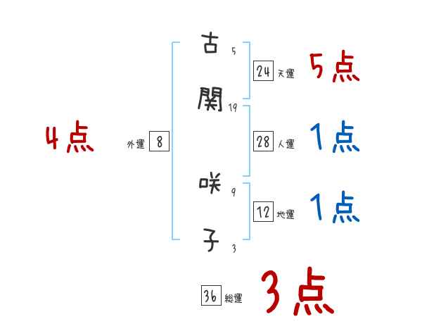 総運![]() | 古関咲子さんの総運は36画の3つ星!先見性が豊かです。多少神経質で苦労することも。 あなたの人生を表す1番重要な運勢です。生涯を通じて影響する総合運となり、主に50歳以降の晩年期に影響を及ぼします。 |