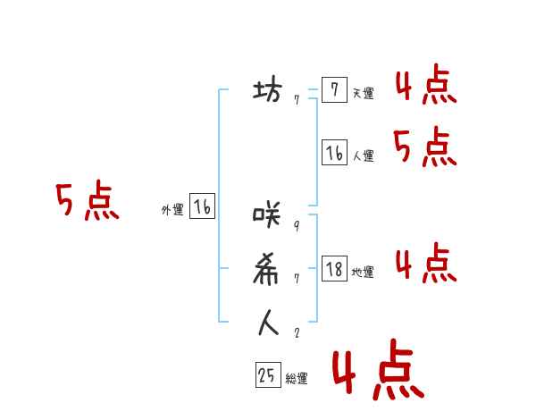坊咲希人さんの画数の鑑定結果