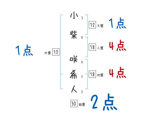 小柴咲希人さんの画数の鑑定結果