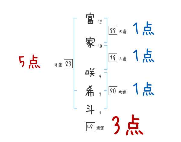外運![]() | 富家咲希斗さんの外運は23画の5つ星!想像力に優れ活力がある。一代で成功し名誉を手に入れる。 生活面を象徴する運勢です。外部から受ける影響力を表し、結婚運、家庭運や職場、環境への順応性を表します。 |