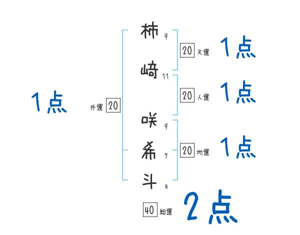 総運![]() | 柿﨑咲希斗さんの総運は40画の2つ星!自信過剰で物事に固執するためトラブルに注意。 あなたの人生を表す1番重要な運勢です。生涯を通じて影響する総合運となり、主に50歳以降の晩年期に影響を及ぼします。 |
