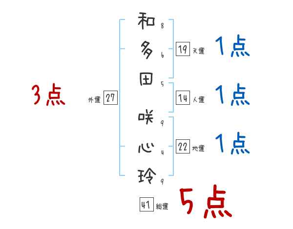 和多田咲心玲さんの画数の鑑定結果