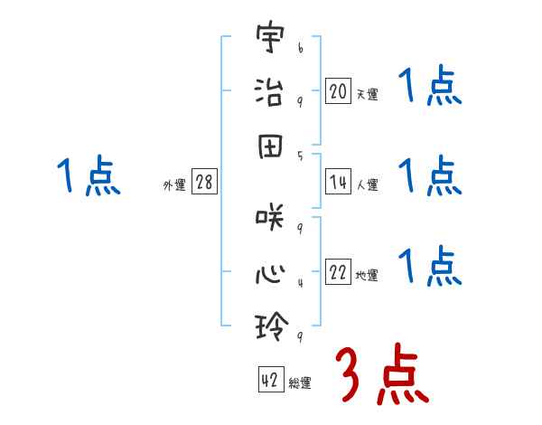 宇治田咲心玲さんの画数の鑑定結果