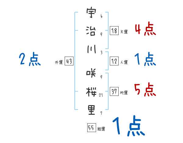 宇治川咲桜里さんの画数の鑑定結果
