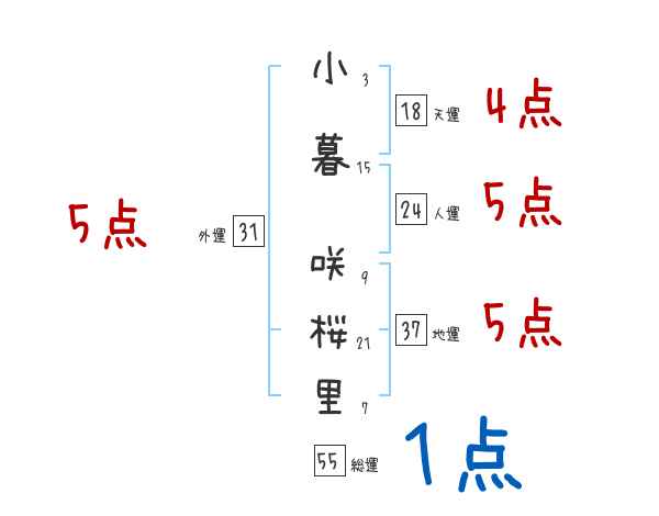 小暮咲桜里さんの画数の鑑定結果