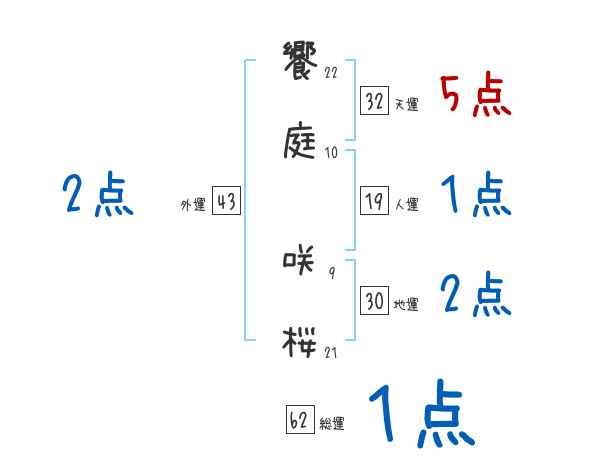 饗庭咲桜さんの画数の鑑定結果
