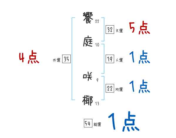 饗庭咲椰さんの画数の鑑定結果