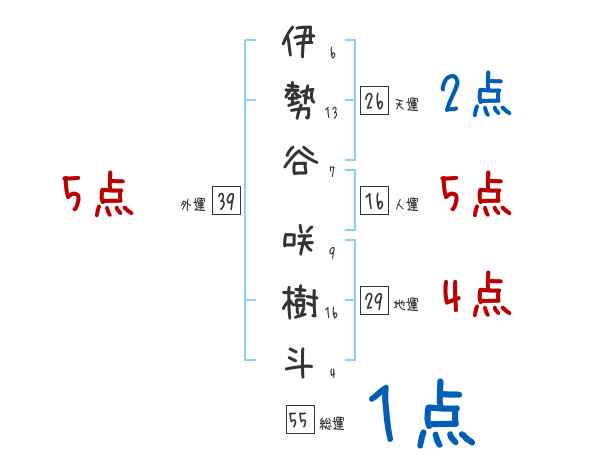 伊勢谷咲樹斗さんの画数の鑑定結果