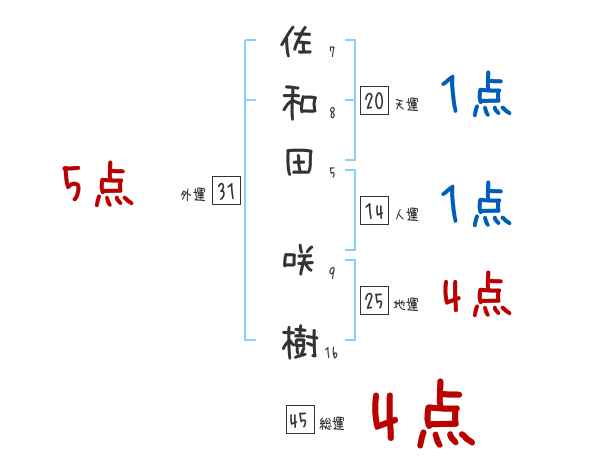 外運![]() | 佐和田咲樹さんの外運は31画の5つ星!社交性があり判断力に優れる。順風満帆な人生で円満な生活。 生活面を象徴する運勢です。外部から受ける影響力を表し、結婚運、家庭運や職場、環境への順応性を表します。 |