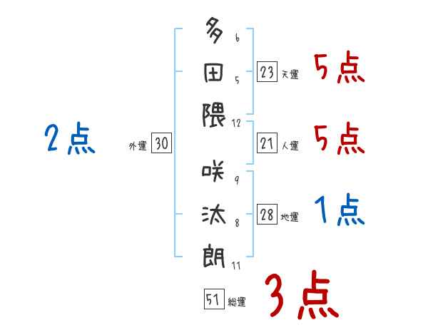多田隈咲汰朗さんの画数の鑑定結果