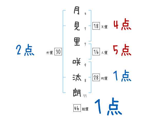 外運![]() | 月見里咲汰朗さんの外運は30画の2つ星!浮き沈みの激しさに注意しましょう。 生活面を象徴する運勢です。外部から受ける影響力を表し、結婚運、家庭運や職場、環境への順応性を表します。 |