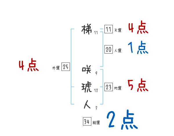 梯咲琥人さんの画数の鑑定結果