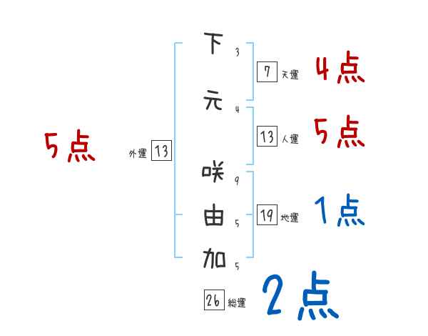 天運![]() | 下元咲由加さんの天運は7画の4つ星!強い意志や信念を持ち独立心が強い。自立する。 家系が持つ宿命的な運勢を表します。祖先から受け継いだ苗字ですので自分の力が及びません。家柄を象徴します。 |