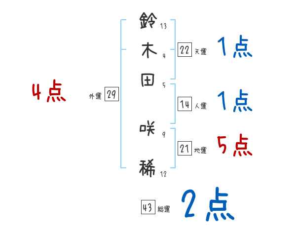 鈴木田咲稀さんの画数の鑑定結果