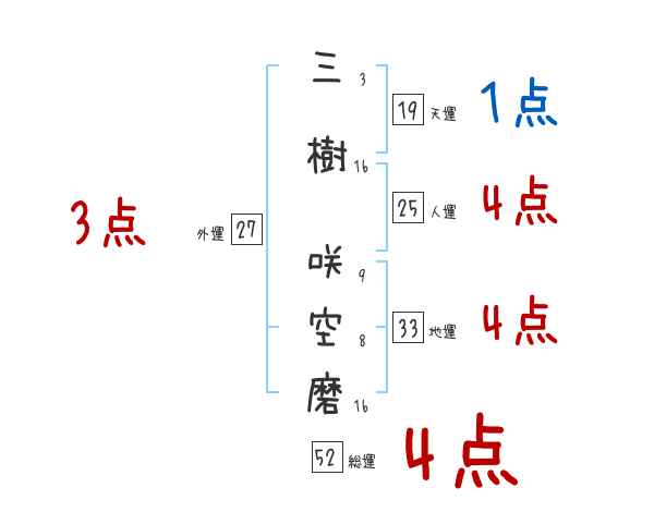 三樹咲空磨さんの画数の鑑定結果
