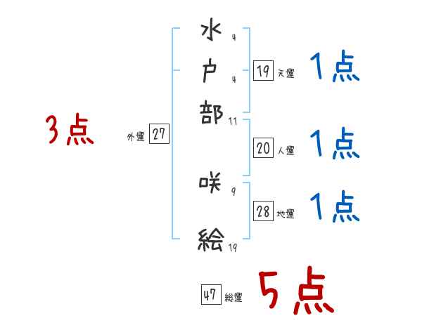 水戸部咲絵さんの画数の鑑定結果