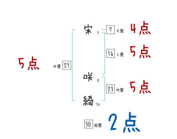 宋咲綺さんの画数の鑑定結果