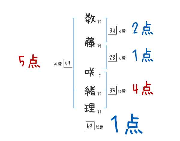 数藤咲緒理さんの画数の鑑定結果
