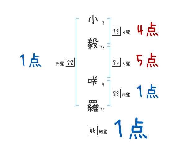 小毅咲羅さんの画数の鑑定結果