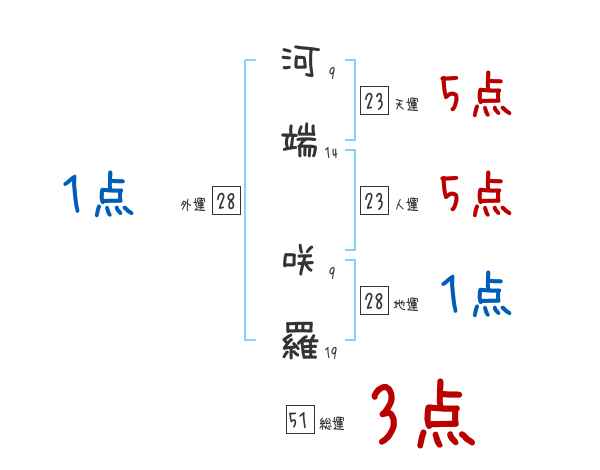 河端咲羅さんの画数の鑑定結果