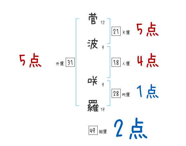 菅波咲羅さんの画数の鑑定結果