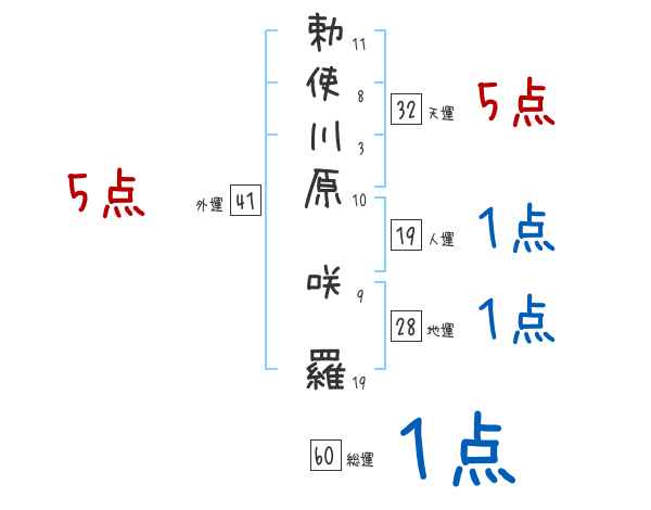 勅使川原咲羅さんの画数の鑑定結果