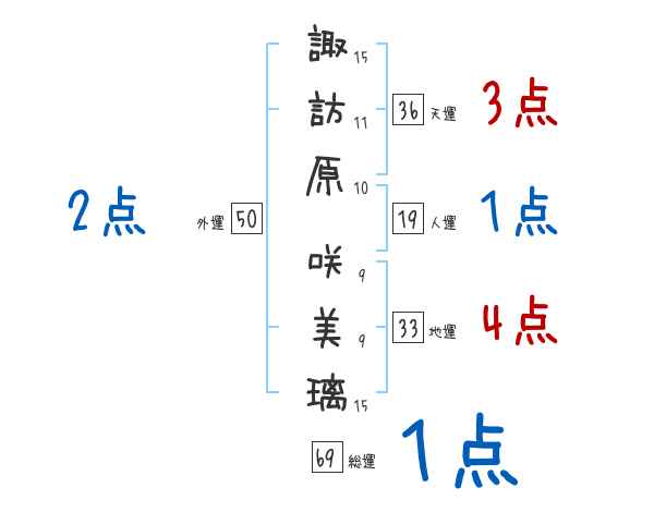 諏訪原咲美璃さんの画数の鑑定結果