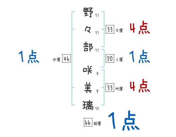 野々部咲美璃さんの画数の鑑定結果