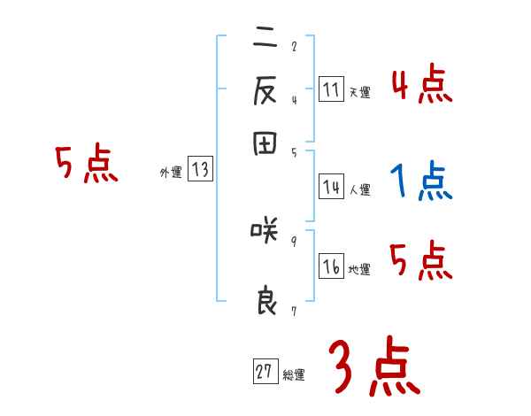 二反田咲良さんの画数の鑑定結果
