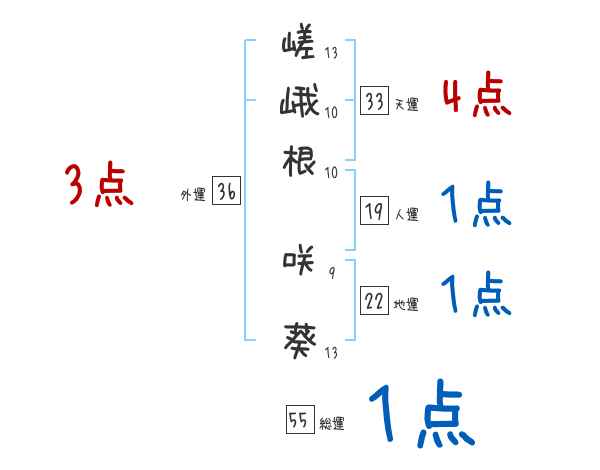 外運![]() | 嵯峨根咲葵さんの外運は36画の3つ星!先見性が豊かです。多少神経質で苦労することも。 生活面を象徴する運勢です。外部から受ける影響力を表し、結婚運、家庭運や職場、環境への順応性を表します。 |