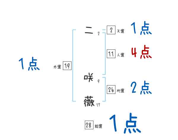 二咲薇さんの画数の鑑定結果