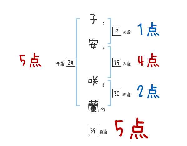 子安咲蘭さんの画数の鑑定結果