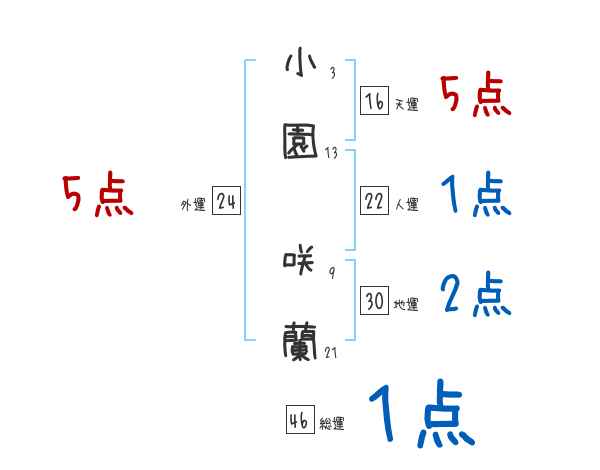 小園咲蘭さんの画数の鑑定結果