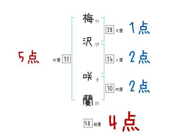 梅沢咲蘭さんの画数の鑑定結果