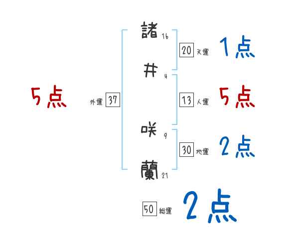 諸井咲蘭さんの画数の鑑定結果