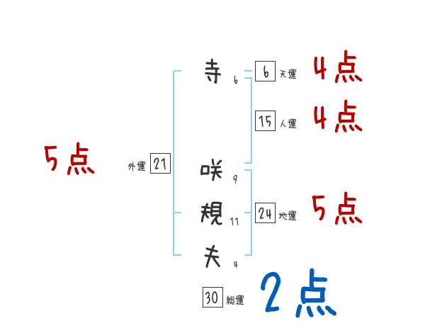 寺咲規夫さんの画数の鑑定結果