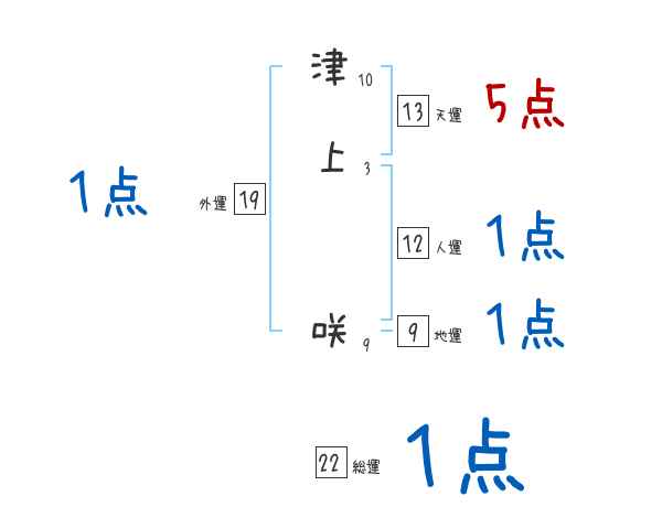 津上咲さんの画数の鑑定結果