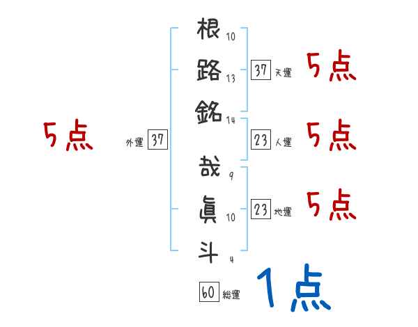外運![]() | 根路銘哉眞斗さんの外運は37画の5つ星!努力家で順応性に優れる。現実的な考え方ができ忠実に物事をこなす。 生活面を象徴する運勢です。外部から受ける影響力を表し、結婚運、家庭運や職場、環境への順応性を表します。 |
