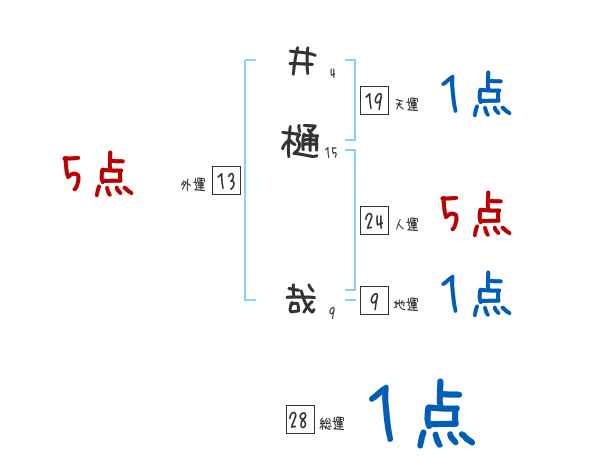 総運![]() | 井樋哉さんの総運は28画の1つ星!家庭環境に注意。スポーツで活躍できる能力があるかも。 あなたの人生を表す1番重要な運勢です。生涯を通じて影響する総合運となり、主に50歳以降の晩年期に影響を及ぼします。 |