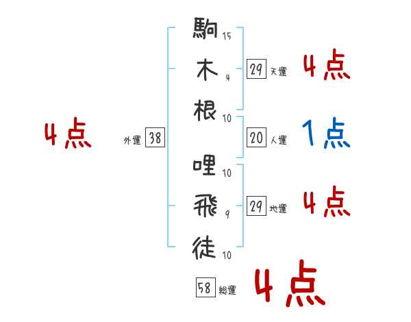 駒木根哩飛徒さんの画数の鑑定結果