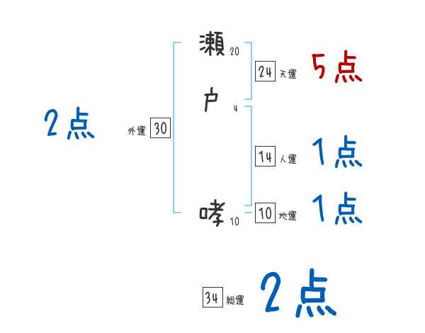 瀬戸哮さんの画数の鑑定結果