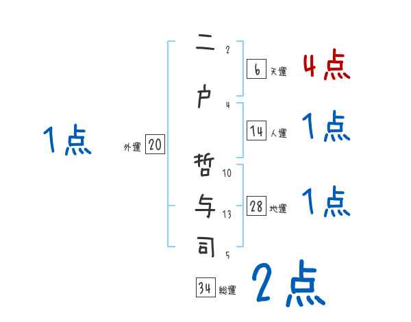 二戸哲与司さんの画数の鑑定結果